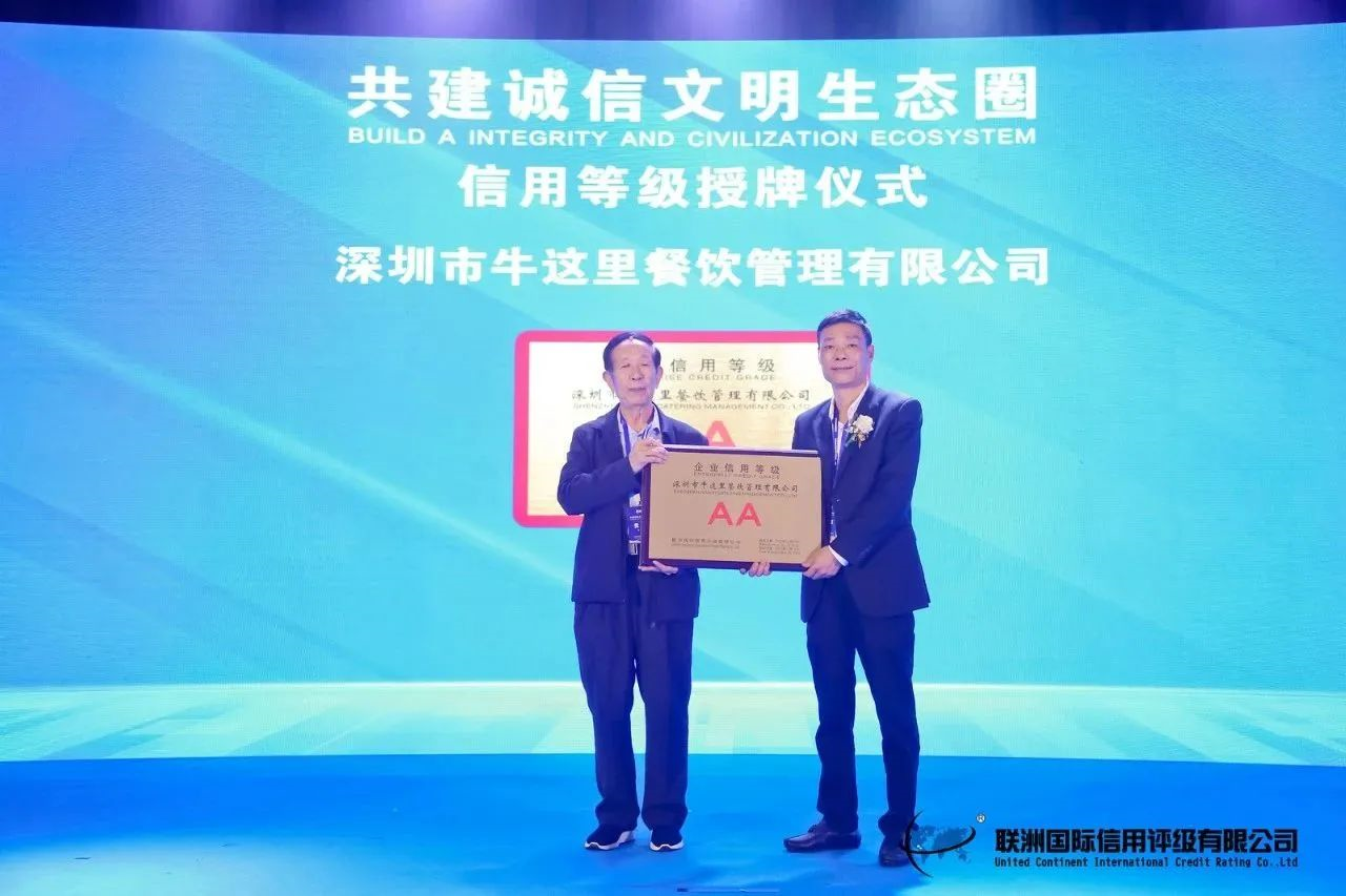深圳市牛这里餐饮管理有限公司获评AA信用等级