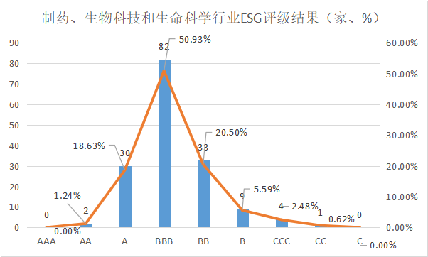 图1:制药、生物科技和生命科学行业上市公司ESG评级结果